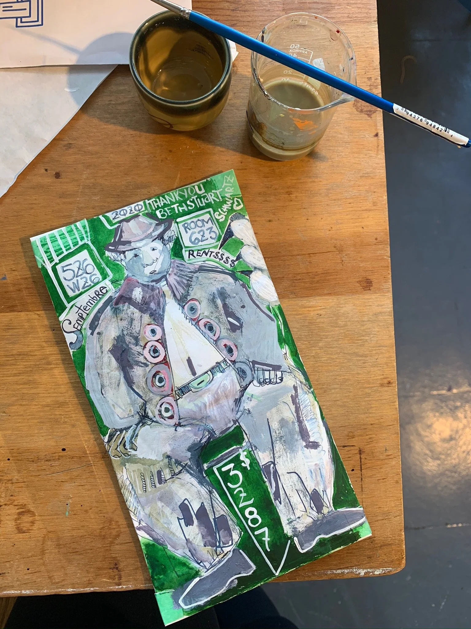 Like the envelopes I paint for the IRS, I also paint the envelopes for my art studio. Not one day passes that I don’t fully appreciate how special the space and building are that I “schtudio” in. I am so grateful and happy here. It is a home and sanctuary. Thank you Gloria Naftali and Thank you West Chelsea Arts Building.